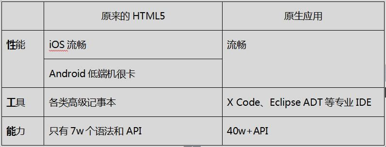 業(yè)內(nèi)俗稱 HTML5 有“性功能”障礙。即 HTML5 性能不如原生、開發(fā)工具不如原生、能力調(diào)用不如原生。