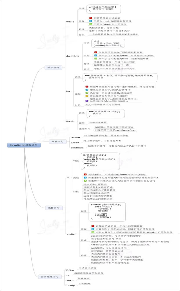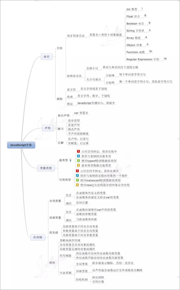 俗話說,好記性不如爛筆頭,學習的道路就是要不斷的總結歸納,下面將po出9張javascript相關的思維導圖帶你進入JS世界。 (思維導圖又叫心智圖,是表達發射性思維的有效的圖形思維工具 ,它簡單卻又極其有效,是一種革命性的思維工具。思維導圖運用圖文并重的技巧,把各級主題的關系用相互隸屬與相關的層級圖表現出來,把主題關鍵詞與圖像、顏色等建立記憶鏈接,思維導圖充分運用左右腦的機能,利用記憶、閱讀、思維的規律,協助人們在科學與藝術、邏輯與想象之間平衡發展,從而開啟人類大腦的無限潛能。思維導圖因此具有人類思維的強大功能。)