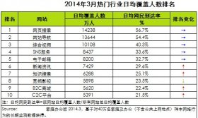 2014年3月,網頁搜索日均覆蓋人數達1.4億人,網民到達率為56.7%,位居第一;網站導航日均覆蓋人數達1.4億人,網民到達率為54.4%,位居第二 -