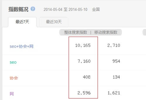 為什么50+seo指數(shù)這么高?因?yàn)?0和seo的指數(shù)疊加了,舉個(gè)例子:seo+協(xié)會(huì)+網(wǎng)這個(gè)詞: