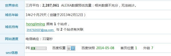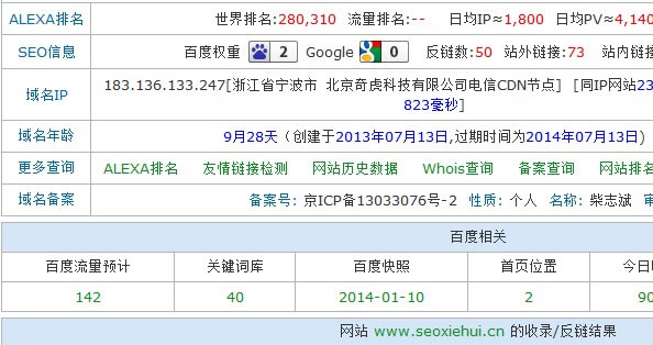 以上所有的權(quán)重查詢都是來(lái)自站長(zhǎng)之家的站長(zhǎng)工具,當(dāng)你快速提高了網(wǎng)站權(quán)重后,別人在這個(gè)站長(zhǎng)工具上查詢就會(huì)覺(jué)得你的網(wǎng)站很牛X,但是所有的第三方站長(zhǎng)工具都是如此嗎?上面說(shuō)的搜索50+seo,在站長(zhǎng)工具查看排名第二的網(wǎng)站,權(quán)重是4,那在愛(ài)站網(wǎng)查詢呢?