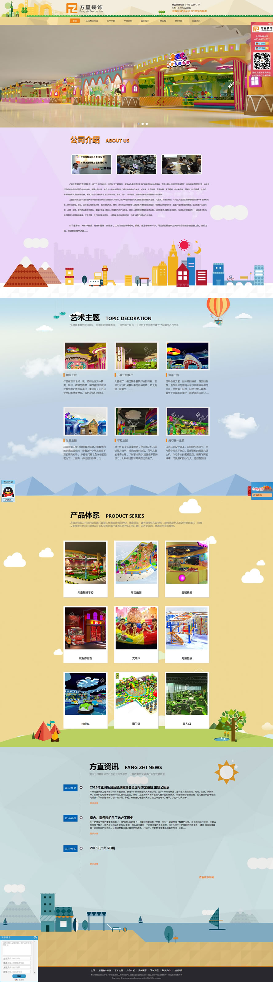 廣州方直裝飾工程有限公司,位于廣州市海珠區。公司成立于2009年,是室內兒童游樂設備生產和裝飾行業的領導者,有著豐富的兒童樂園設備開發、制造和裝修管理經驗,本公司打造的室內兒童樂園已有300多家,遍及全國各地,并且與一些知名品牌建立穩定的戰略合作關系。