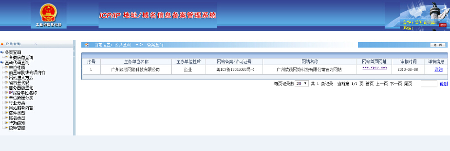 當查詢備案信息結果頁面出現時,如果備案信息查詢成功,將看到下圖所示頁面,仔細查看返回信息與網站的信息是否相符。如果查詢不到信息,說明該網站并未備案,此時應提高警惕,最好是不要在該網站進行消費和一些交易,防止上當受騙。